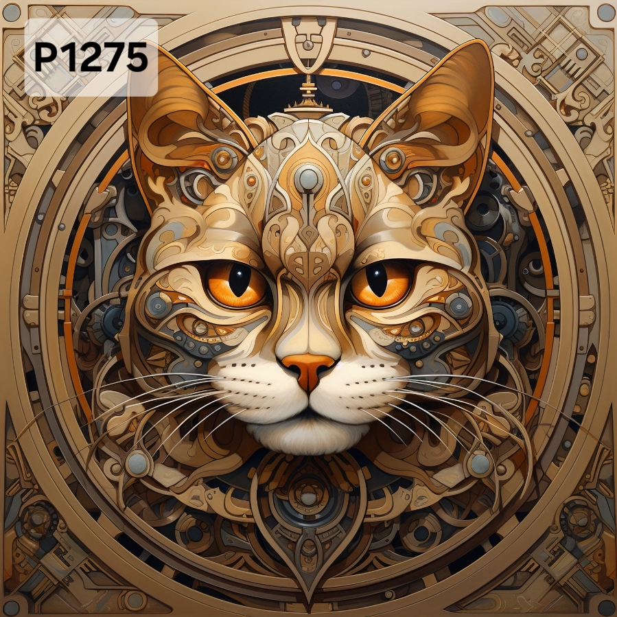 Panel poliester wodoodporny oxford na TORBĘ - KOT GEOMETRYCZNY BEZOWY P1275 NA ZAMÓWIENIE