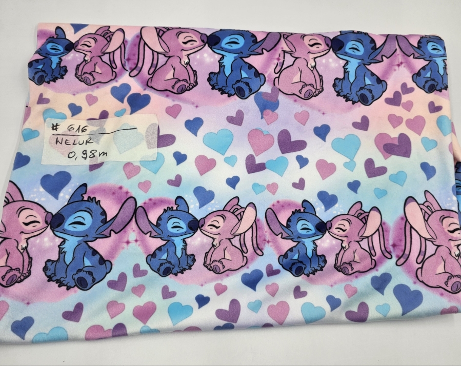 Welur drukowany elastyczny - STITCH I ANGEL SERDUSZKA 0.98M  #616